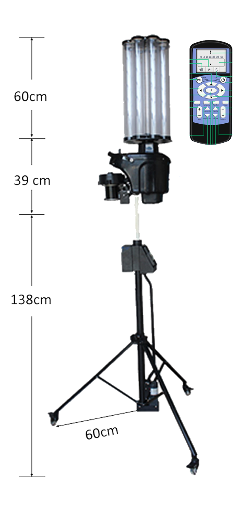 Höheneinstellung (Stativ): elektrisch, ca. 1.40 - 2.10m